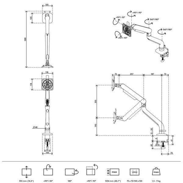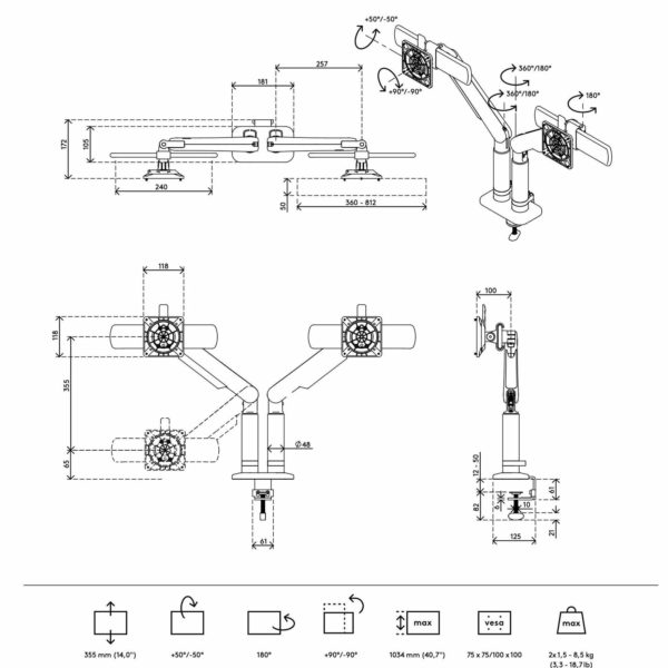 The lowest possible footprint and highest usability. The unique monitor sliders allow users to intuitively move dual monitors individually, but