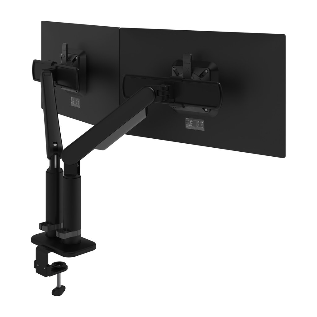 The lowest possible footprint and highest usability. The unique monitor sliders allow users to intuitively move dual monitors individually, but also align them perfectly, even at the back of the desk. The high-end gas springs allow for fingertip dynamic height adjustment and its precision engineered joints and monitor sliders for smooth operation when adjusting the monitors in depth. A full feature monitor arm with award winning design. Made by Dataflex Netherlands.